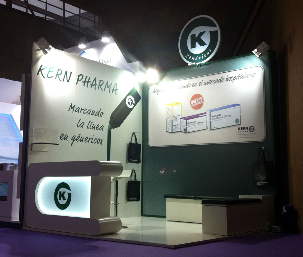 El diseño, fabricación y montaje de este stand lo realizó el equipo de Ricard Mata Serveis Integrals para la marca de genéricos Kern Pharma.